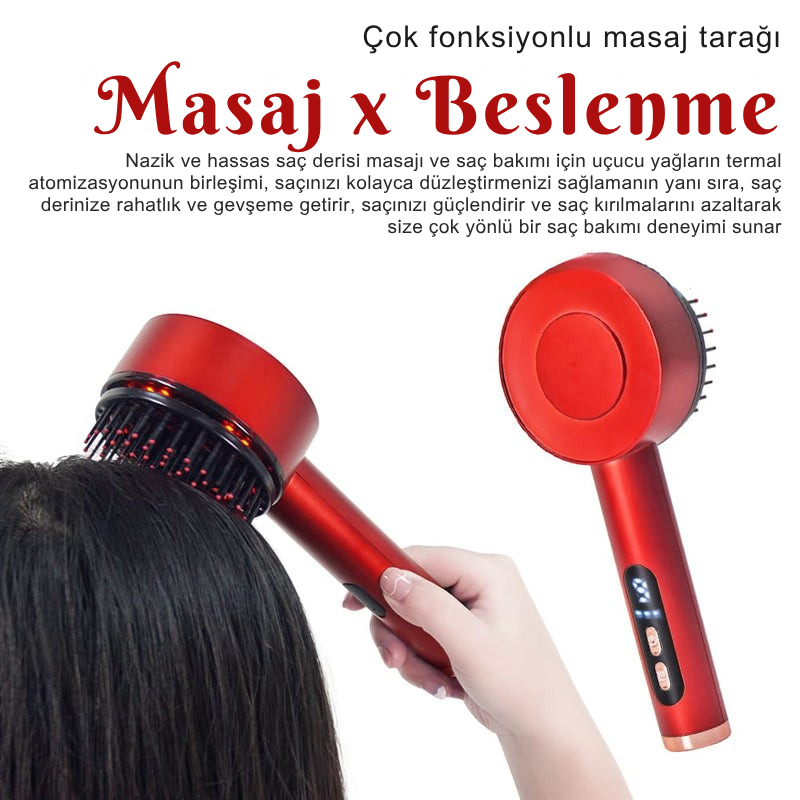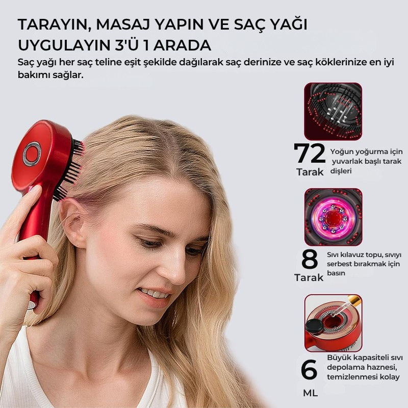 Yeni nesil çok fonksiyonlu masaj tarağı, saç derisini uyararak kökten uca canlanma sağlar.